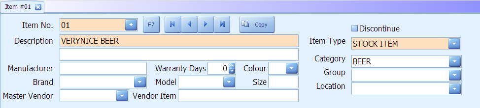 1. Click on item master
