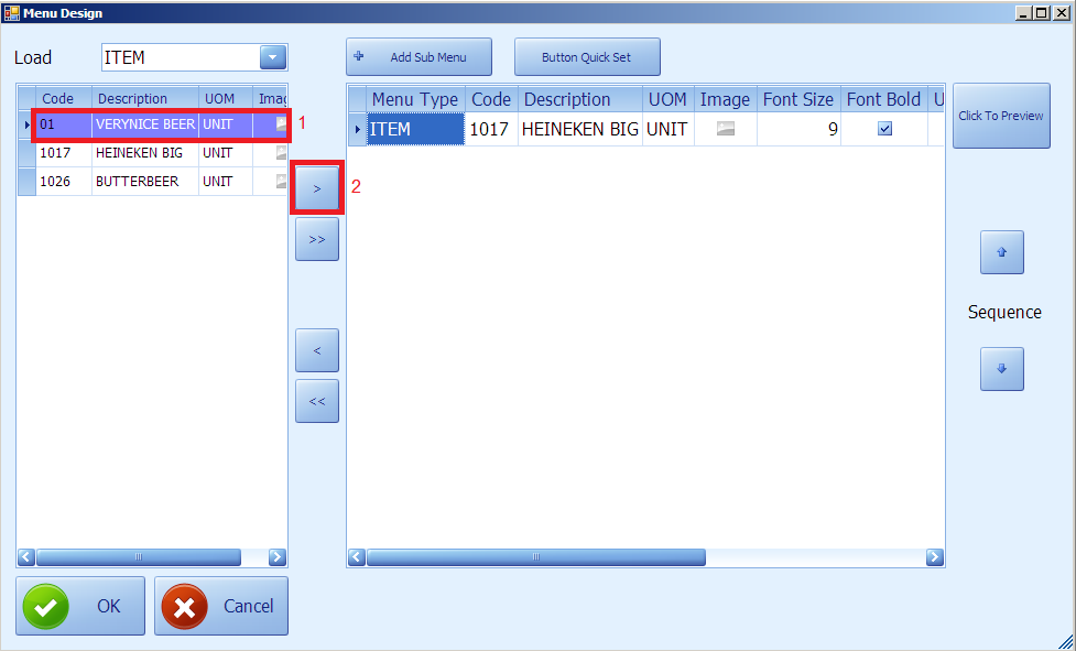 2. Press”F7” and select  item you want to add UOM ( Unit of Measure ).
