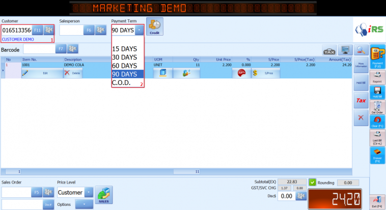 1. In IRS POS SYSTEM at bottom left corner , Press “Color setting”.